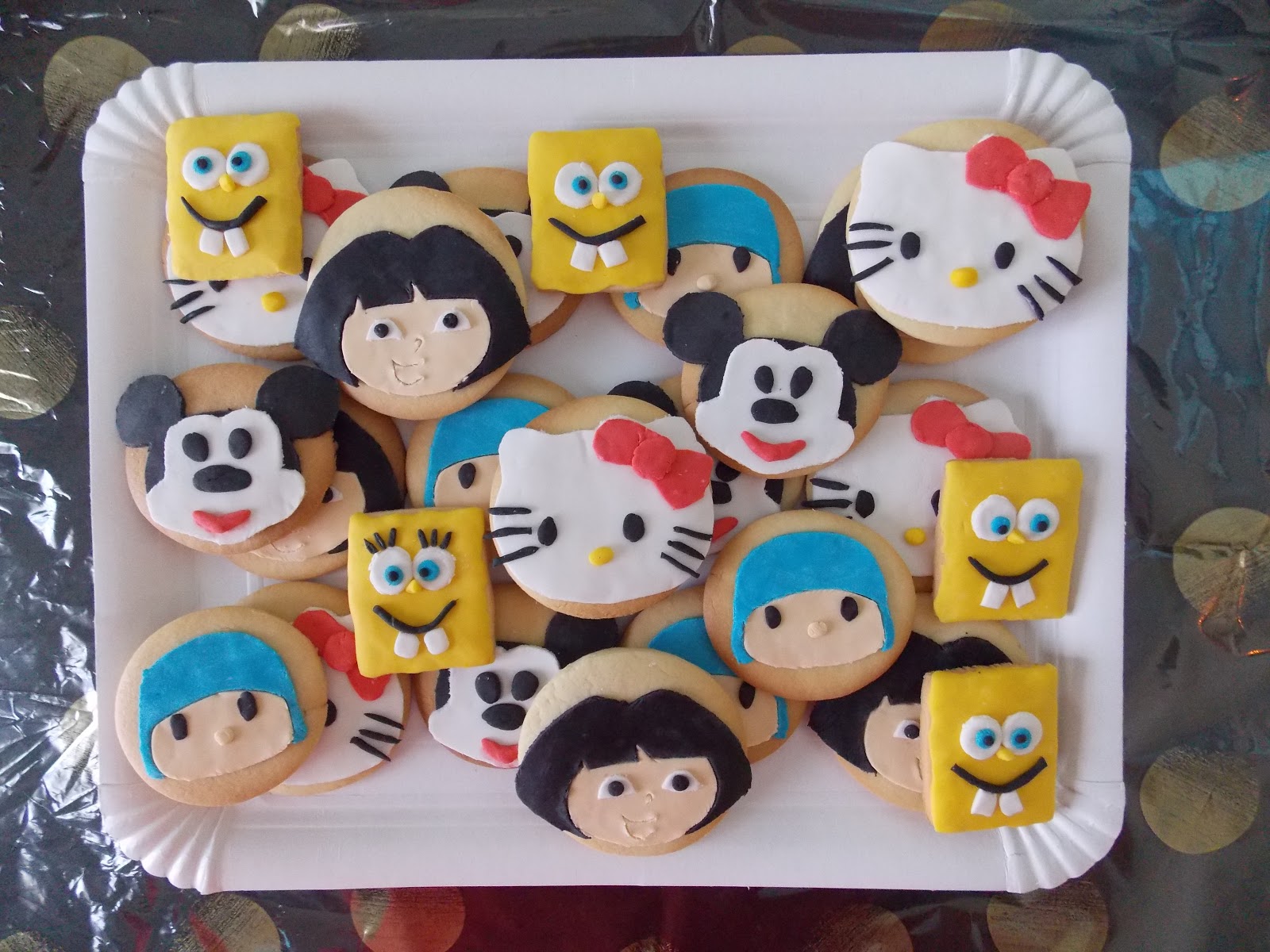 Buenas tardes amig@s. En el dia de hoy os presento una variedad de galletas de disney que fueron hechas para el cumpleaños de una niña. Son de Bob Esponja, Pocoyó, Hello Kitty, Dora la Exploradora y Mickey Mouse. Os dejo unas fotos de cada una de ellas.