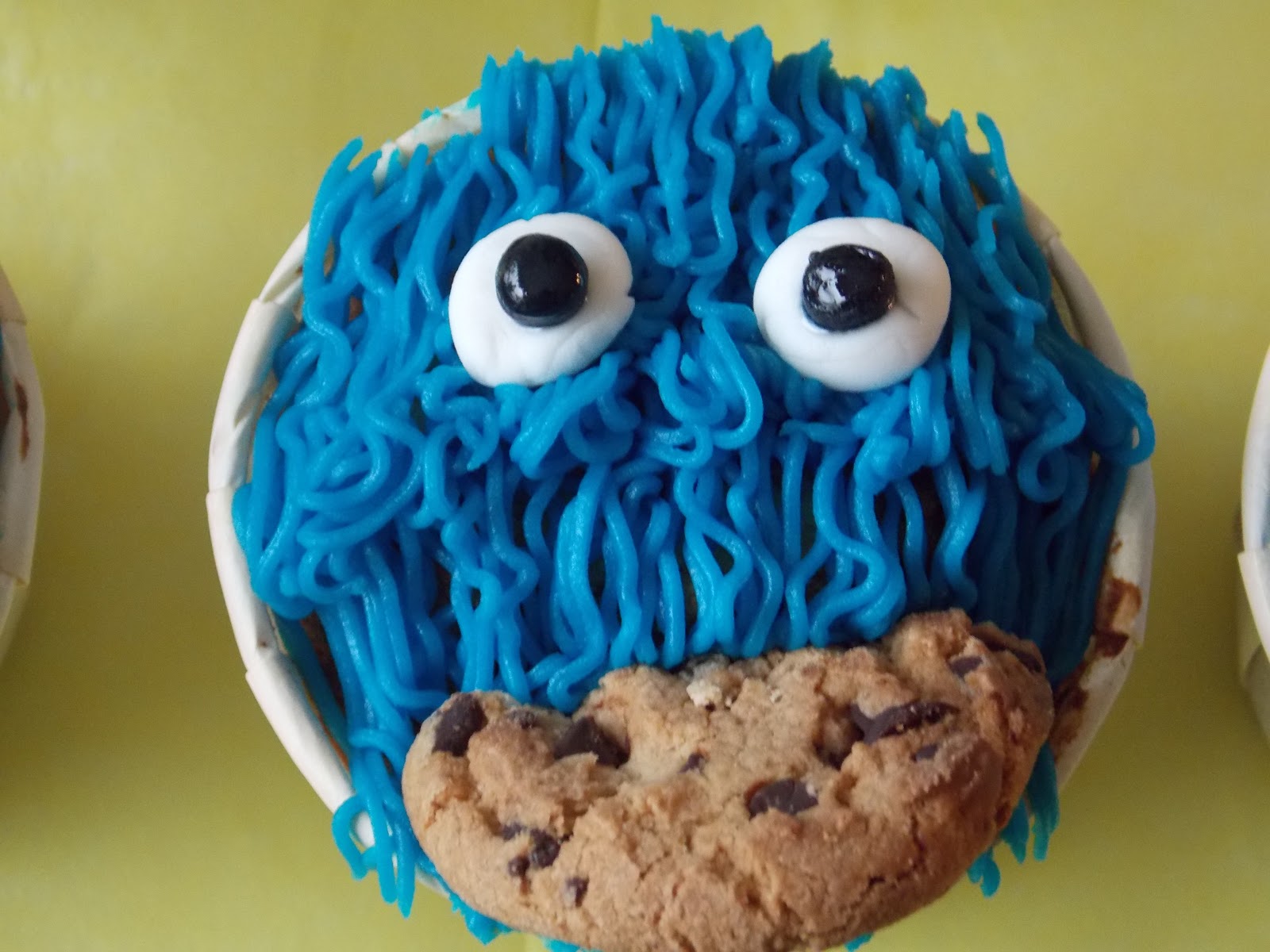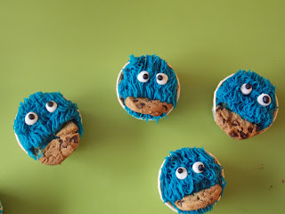 CUPCAKES DE CANELA Y CHIPS DE CHOCOLATE CON MACARONS AZULES